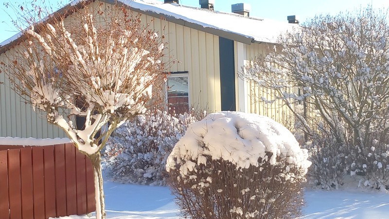 …. och strålande vacker fredagsmorgon, men det har varit kallt i natt. Som lägst har vi haft -13º, men nu är det betydligt mildare, bara runt två minus och dessutom är det alldeles vindstilla, så jag ska nog testa att gå en vända på Barkan när jag morgonpysslat och fredagsstädat färdigt.